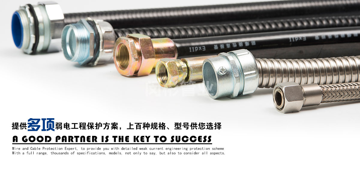 除此之外,公司還致力于金屬軟管接頭,普利卡管,普利卡接頭,不銹鋼穿線管的銷售。公司本著品種多、質量優、服務好的宗旨,不斷開發、創新產品,以滿足日益發展的市場需要。產品主要包括:金屬軟管接頭 ,橋架接頭,塑料軟管接頭,AD接頭,不銹鋼接頭,普利卡接頭,包塑金屬軟管,不銹鋼軟管,不銹鋼波紋管,不銹鋼編織軟管,普利卡軟管,尼龍軟管,塑料波紋管,尼龍拖鏈等機床配件。產品廣泛應用于建筑、機床、鐵路、車輛、化工、汽車、監控、建筑裝修、建筑裝飾、建材、裝修裝飾等行業。上海閔彬管業有限公司高質量包塑管在實際使用中多家工程單位的認可、使用與推廣。